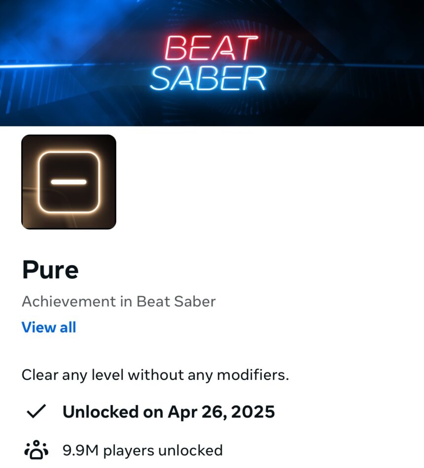Das Beat Saber-Achievement "Pure" wird freigeschaltet, sobald man einen Level ohne Modifikatoren durchgespielt hat, also ganz am Anfang des Spiels.