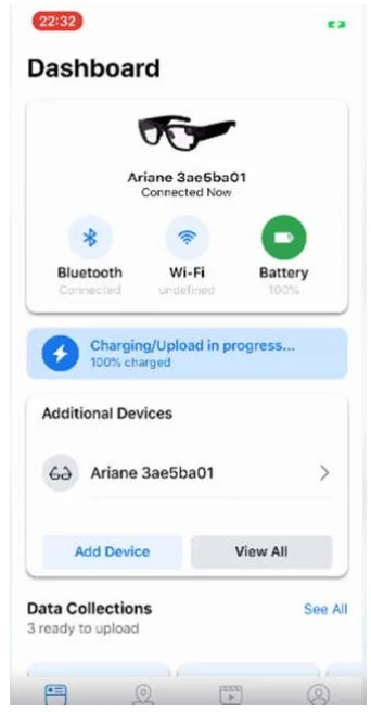 Eingerichtet wird Gemini über eine Companion-App namens "Ariane": Über die App kann die Brille mit dem WLAN vernetzt werden, der Batterie-Status kann geprüft und die Sensordaten hochgeladen werden. Außerdem ist eine Funktion vorgesehen, bei der die Brille Benachrichtigungen an die App schickt.