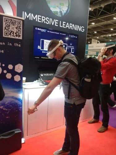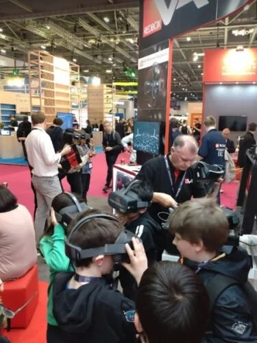 RedboxVR ist bereits seit vielen Jahren im VR-Lehr- und Ausbildungssektor tätig. Das Unternehmen bietet ein System für den Einsatz von VR in Klassenzimmern an. Es umfasst unter anderem robuste und einfach zu bedienende Headsets. Das Unternehmen war mit zwei Ständen auf der Messe vertreten. Beide waren bestückt mit den eigenen VR-Systemen sowie der Hard- und Software von Partnern.