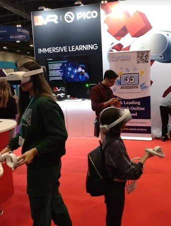 Auch Microsoft ist bestrebt, im VR-Bildungssektor Fuß zu fassen. Dies zeigt "Minecraft Education", eine spezielle Version des beliebten Spiels, die als Lehrmittel der nächsten Generation entwickelt wurde. Darüber hinaus zeigten die neuesten robotergestützten Lernprogramme, wie die Zukunft der Bildung aussehen könnte. Zudem lud die Messe Schüler:innen in Gruppen aktiv zur Teilnahme an der dreitägigen Veranstaltung ein.