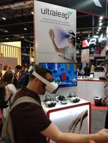 Auch Ultraleap war vor Ort. Das Unternehmen stellte seine Ultraschall-Tracking-Technologie vor. Dabei handelt es sich um ein Hand-Tracking-Verfahren, das mit einer Reihe von VR-Brillen kombiniert werden kann. Cleanbox präsentierte den Ausstellern seine Lösung zur Sterilisation von Headsets und Controllern mit ultraviolettem Licht. Das System wurde während der Veranstaltung aktiv vorgeführt.