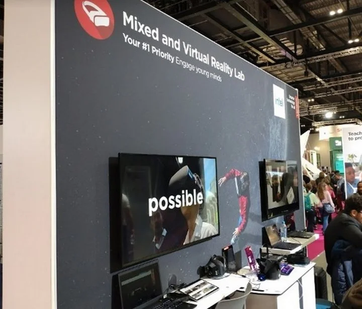 Auch Intel und Lenovo stellten ihre VR-Bildungsplattformen vor. Die beiden Unternehmen hatten einen gemeinsamen Stand, auf dem sie für ihre Mixed und Virtual Reality Lab Initiative warben. Lenovo war an mehreren Ständen mit Mirage-Headsets vertreten.