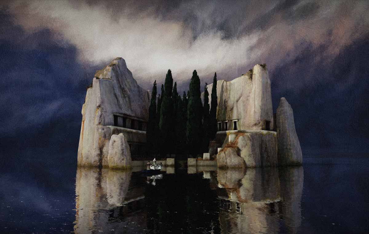 Ich erhielt von den Entwicklern Gelegenheit, die VR-Erfahrung auszuprobieren und die Reise zur Toteninsel anzutreten. In der letzten Sequenz wird man in den Körper der weißen Figur versetzt und schwebt auf dem Ruderboot zum Eiland, betritt die Hafeneinfahrt und gleitet an den Zypressen vorbei in einen ebenso tiefen wie finsteren Raum, der schließlich alles Licht verschluckt.